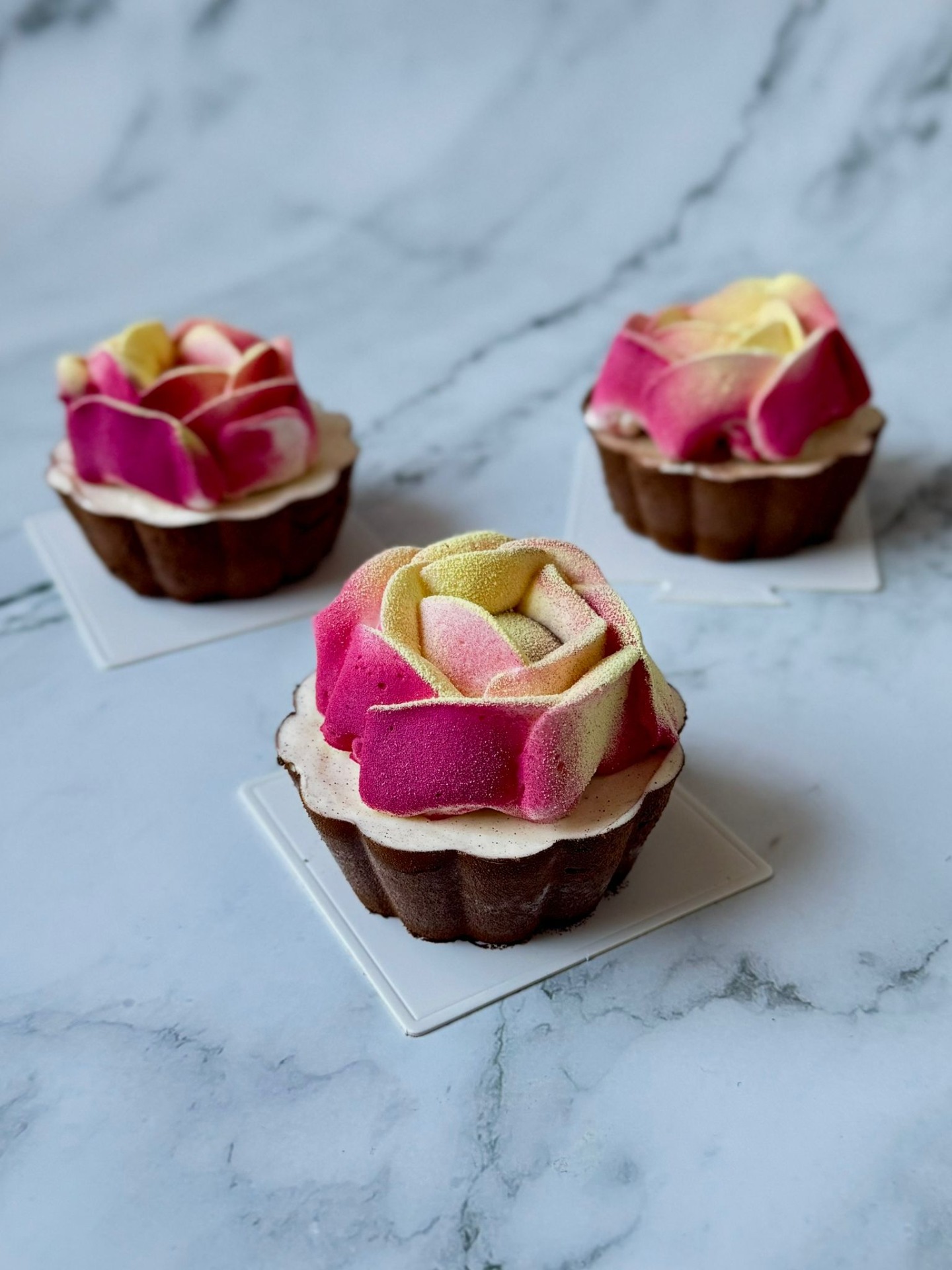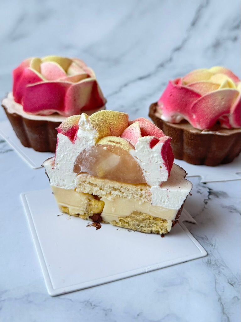 Ke každému dezertu je receptura na jinou glazuru (čokoládovou polevu, čokoládovou glazuru a ovocná glazura na bázi NH pektinu).