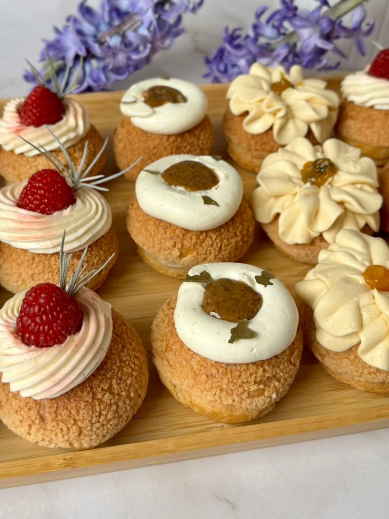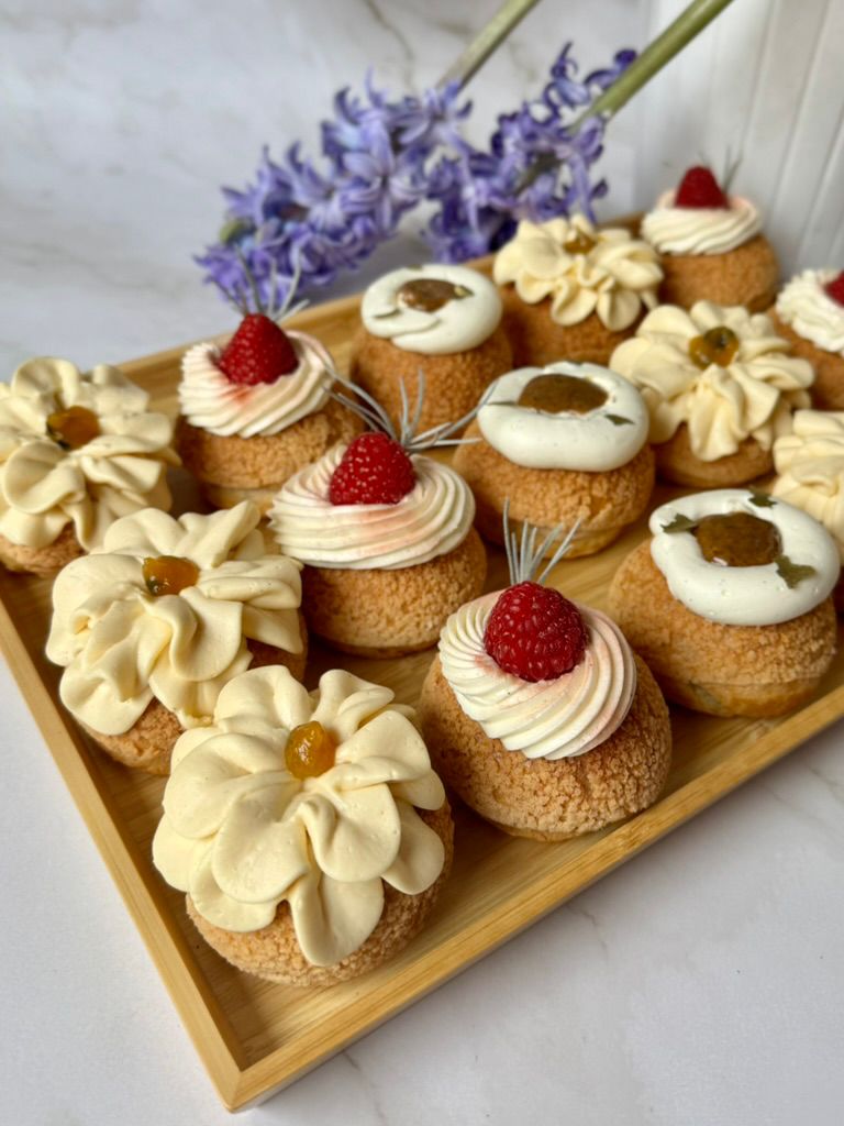 Mangové choux s krémem, ovocnou náplní